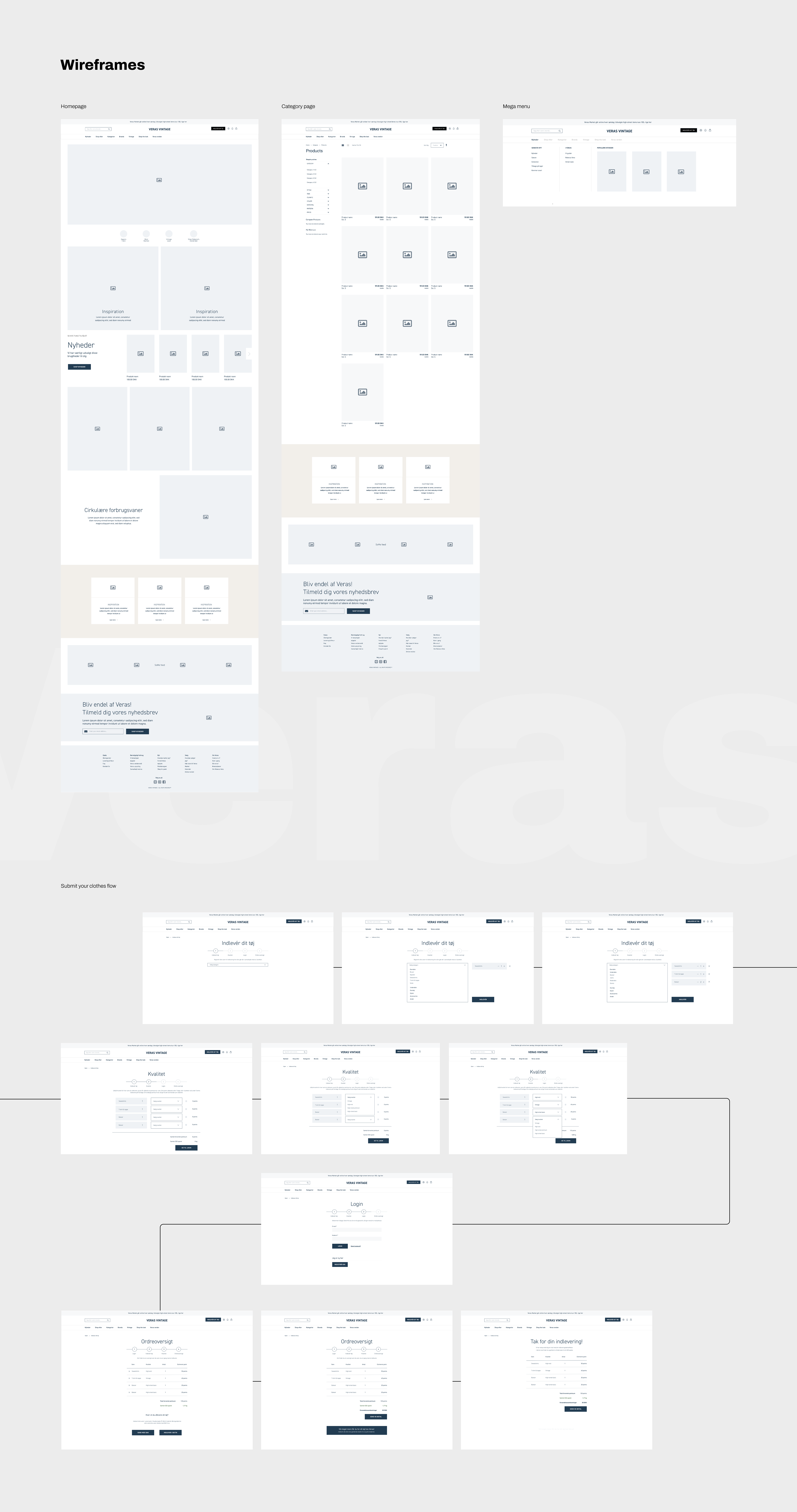 The task was to create a new e-commerce platform through which users could both purchase vintage clothing, but also submit and sell their own. The website should also reflect the brand and feel of Rebecca's quirky and energetic personality.